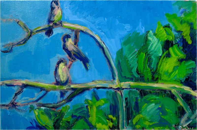On se revit une fois, non plus autour d’un café mais d’un poulet aux citrons confits (car Auvergne est un excellent cuisinier), et le petit tableau avait cédé la place à un autre petit tableau ... alors quand la glace arriva je me décidais: “et la peinture d’Isabelle, on pourrait là voir ?”